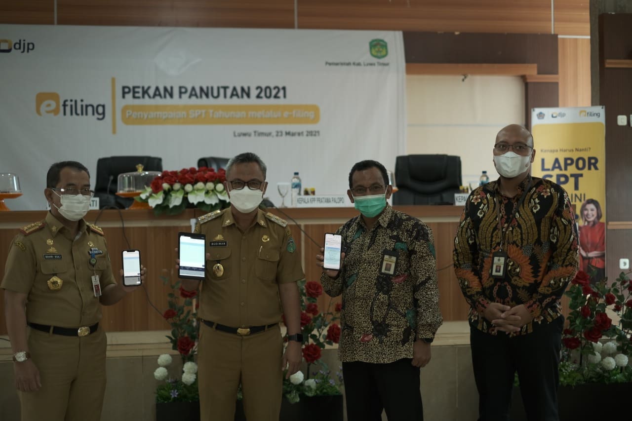 Kantor Pelayanan, Penyuluhan, dan Konsultasi Perpajakan (KP2KP) Malili dan Kantor Pelayanan Pajak Pratama (KPP) Palopo bekerja sama dengan Pemerintah Daerah (Pemda) Kabupaten Luwu Timur menyelenggarakan kegiatan Pekan Panutan Penyampaian SPT Tahunan Orang Pribadi e-Filing di ruang Aula Sasana Praja Sekretariat Daerah Kabupaten Luwu Timur (Selasa, 23/3).