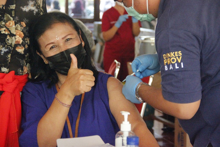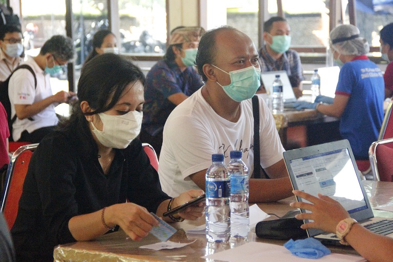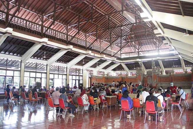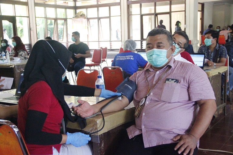 Sebagai petugas pelayanan publik, pegawai Kantor Pelayanan Pajak (KPP) Pratama Denpasar Timur ikut mendapatkan jadwal vaksin di Gedung Wanita Nari Graha Denpasar (Kamis, 25/3). Sebelum menerima vaksin dilakukan pemeriksaan atau screening riwayat penyakit dan kontak dengan pengidap Covid-19 serta pengecekan tekanan darah terlebih dahulu.