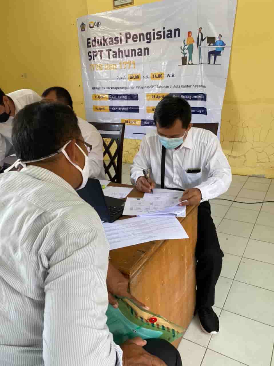 Sama seperti di beberapa kecamatan sebelumnya, KPP Pratama Indramayu bersama relawan pajak dari Universitas Wiralodra hadir untuk membantu pelaporan SPT Tahunan Wajib Pajak Orang Pribadi maupun Badan yang datang ke Kantor Kecamatan Sukagumiwang.