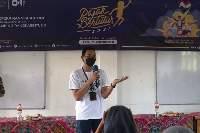 Kantor Pelayanan, Penyuluhan, dan Konsultasi Perpajakan (KP2KP) Rangkasbitung melakukan kegiatan Pajak Bertutur tahun 2021 bersama para siswa SMK yang bertempat di Aula SMK N 2 Rangkasbitung, Kabupaten Lebak (Rabu, 25/8).