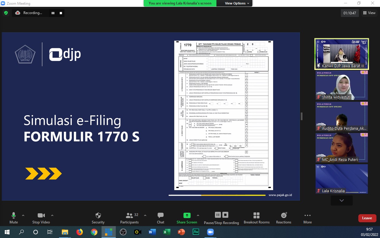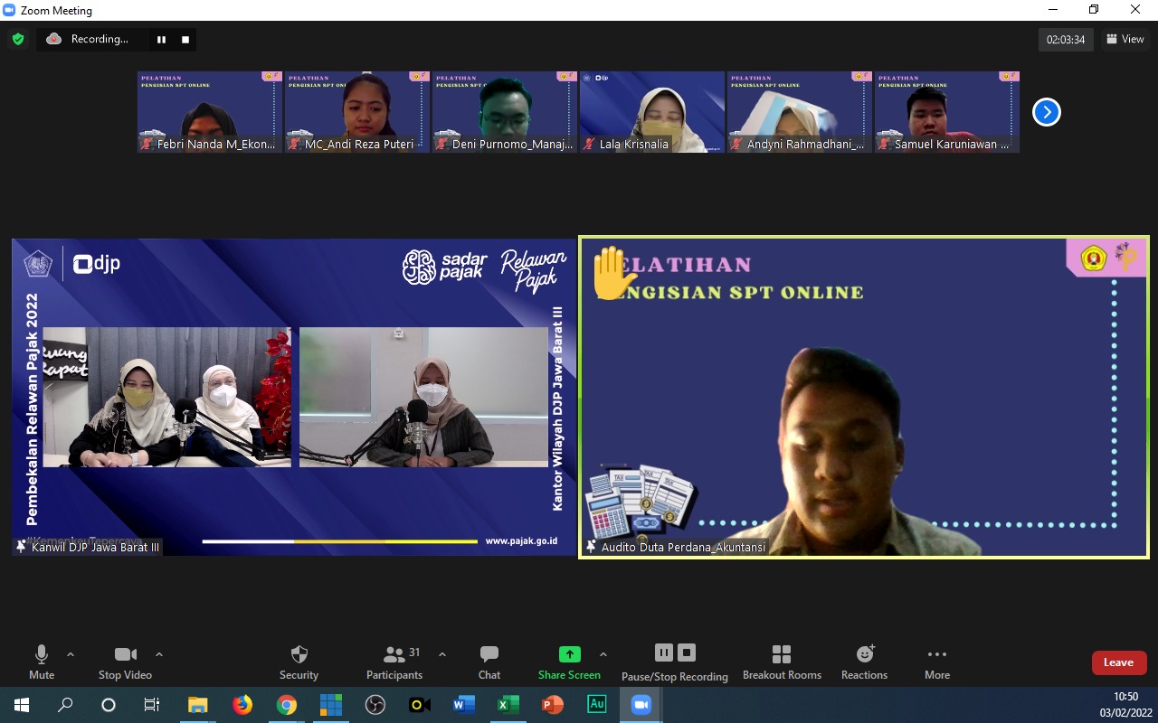Sebanyak 29 Relawan Pajak Universitas Pembanganan Nasional (UPN) Veteran Jakarta mengikuti kegiatan Pelatihan Asistensi Pelaporan Surat Pemberitahuan (SPT) Tahunan yang diadakan oleh Kanwil Direktorat Jenderal Pajak (DJP) Jawa Barat III, Kota Bogor (Kamis, 3/2).