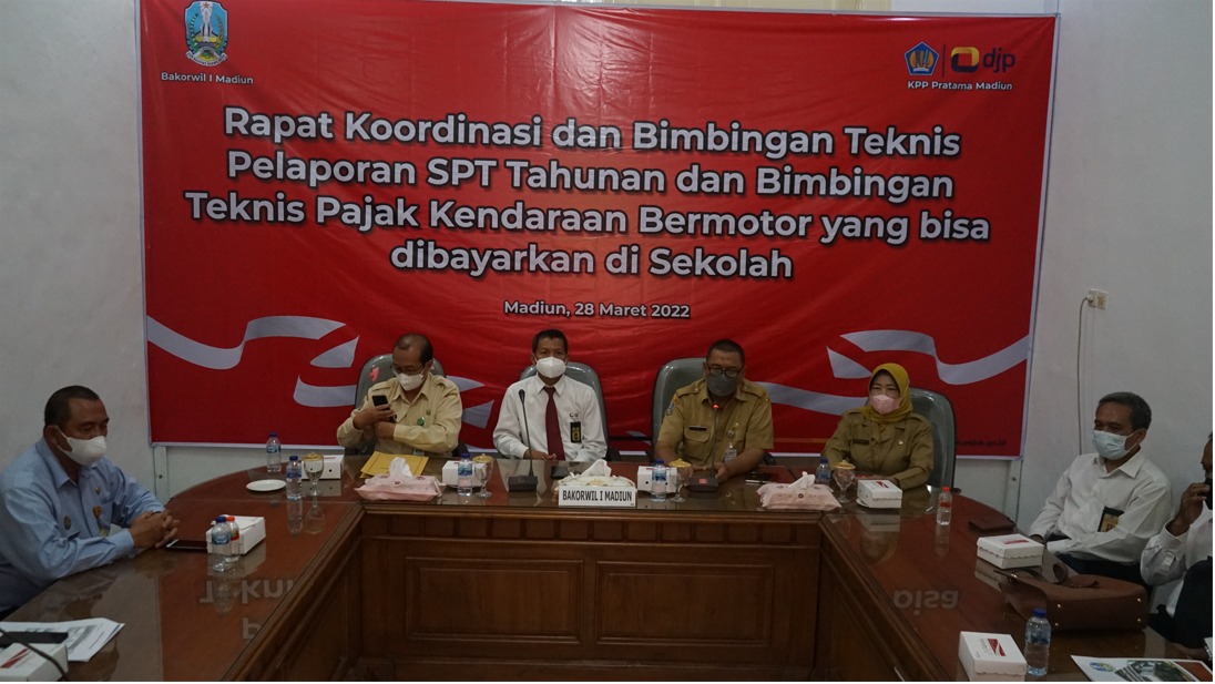 "Sosialisasi ini merupakan bukti langkah awal kerja sama yang baik antara KPP Pratama Madiun dengan Pemerintah Provinsi Jawa Timur dalam memberikan pemahaman perpajakan kepada unit pelaksana teknis di daerah," ujar Sekretaris Bakorwil Renanto Adi Raharjo saat membuka kegiatan dengan sambutan.