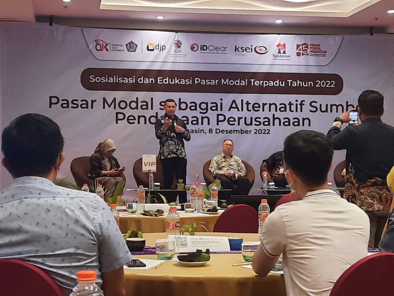 Otoritas Jasa Keuangan (OJK) dan PT Bursa Efek Indonesia (BEI) bekerja sama dengan Direktorat Jenderal Pajak menyelenggarakan Sosialisasi Pasar Modal sebagai Alternatif Sumber Pendanaan Perusahaan di Fugo Hotel Banjarmasin (Kamis, 8/12).
