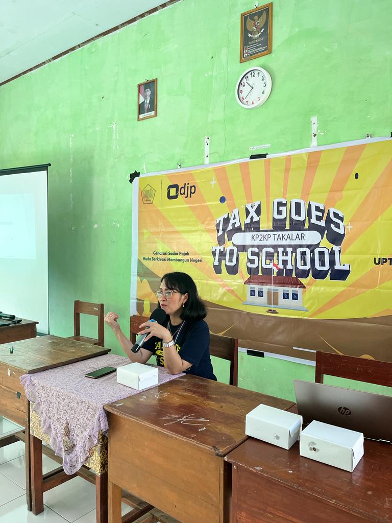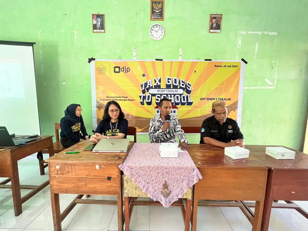 Kantor Pelayanan, Penyuluhan dan Konsultasi Perpajakan (KP2KP) Takalar menyelenggarakan kegiatan Tax Goes To School (TGTS) Tahun 2023 di Sekolah Menengah Kejuruan Negeri (SMKN) 3 Takalar, Takalar, Sulawesi Selatan (Kamis, 20/7). Kegiatan ini diikuti oleh tiga puluh siswa-siswi SMKN 3 Takalar.