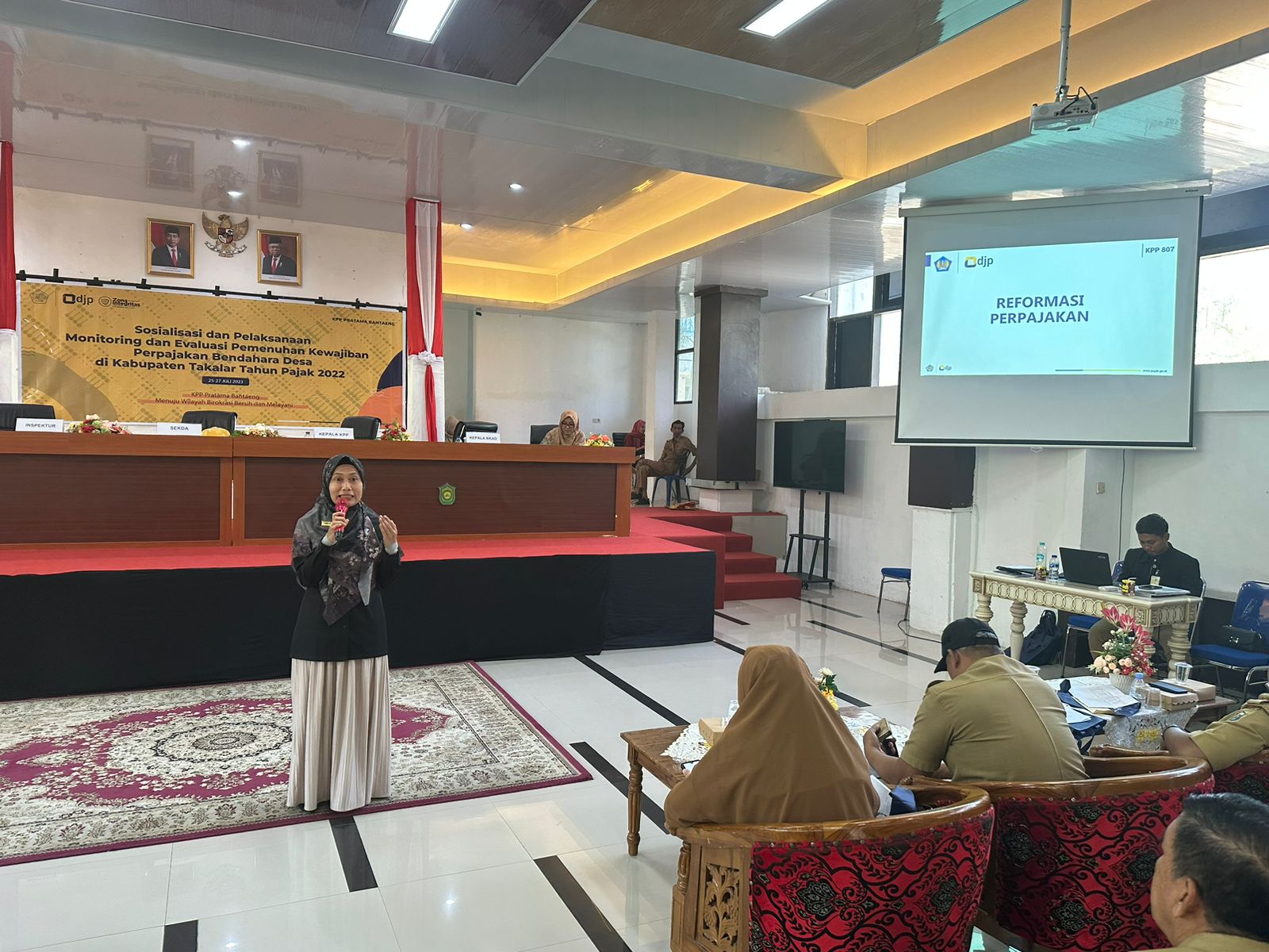 Kantor Pelayanan, Penyuluhan, dan Konsultasi Perpajakan (KP2KP) Takalar bersama Kantor Pelayanan Pajak (KPP) Pratama Bantaeng menyelenggarakan acara Sosialisasi dan Pelaksanaan Monitoring dan Evaluasi Pemenuhan Kewajiban Perpajakan Bendahara Desa se-Kabupaten Takalar, bertempat di Baruga Imannindori Kantor Bupati Kabupaten Takalar (Selasa, 25/7).