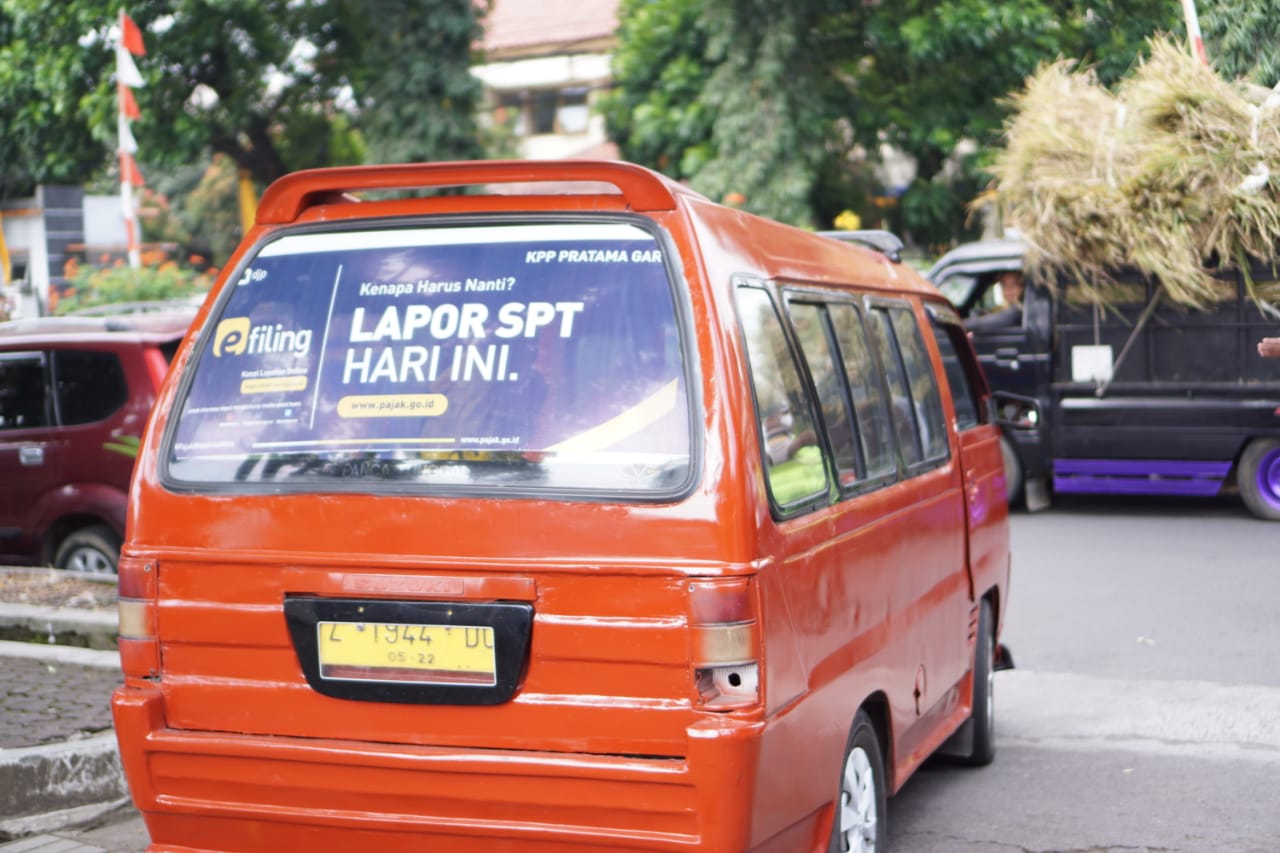 Selain menempel stiker di angkot, KPP Pratama Garut juga menempelkan stiker di mobil dinas. Hal tersebut juga dilakukan untuk mengajak masyarakat agar segera melaporkan SPT Tahunan yang akan berakhir pada 31 Maret 2021 untuk wajib pajak orang pribadi dan 30 April 2021 untuk wajib pajak badan.