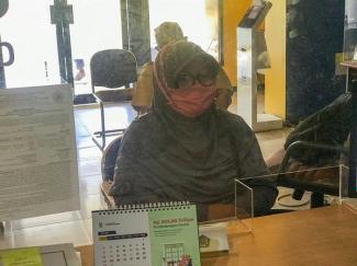 Setibanya di kantor, Novia lalu mengikuti protokol kesehatan dengan mencuci tangan terlebih dahulu, memakai masker, dan terakhir melakukan pengecekan suhu tubuh oleh petugas pengarah pelayanan. Setelah dipanggil sesuai nomor antrean, Novia lalu maju ke meja petugas konsultasi.