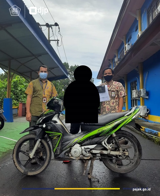 Juru Sita Pajak Negara Kantor Pelayanan Pajak (KPP) Pratama Tahuna bersama dengan Kepala Seksi Pemeriksaan, Penagihan dan Penilaian KPP Pratama Tahuna Sidiq Purnomo melakukan kegiatan penyitaan terhadap satu unit sepeda motor milik penunggak pajak di Kecamatan Manganitu, Kabupaten Kepulauan Sangihe (Selasa, 19/4). Kegiatan penyitaan dilakukan karena wajib pajak memiliki sejumlah utang pajak yang memenuhi kriteria untuk dilakukan penyitaan aset