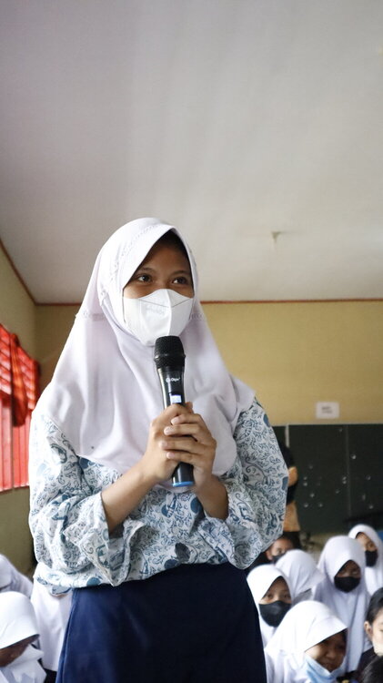 Siswa-siswi SMPN 2 Pangkajene menyimak materi yang dibawakan. Sesi tanya jawab berlangsung dengan seru dengan beberapa pertanyaan berbobot dari siswa SMPN 2 Pangkajene seperti perbedaan antara pajak dengan retribusi daerah, bagaimana kondisi negara Indonesia apabila tidak ada pajak hingga sanksi apa yang diberikan apabila tidak membayar pajak.