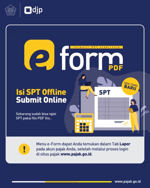 Direktorat Jenderal Pajak (DJP) meluncurkan format pelaporan e-Filing bentuk baru yaitu e-Form PDF di Jakarta (Selasa, 2/3). Format ini banyak memberikan kemudahan kepada wajib pajak dalam mengisi Surat Pemberitahuan (SPT) Tahunan Orang Pribadi.