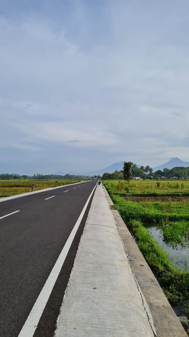 Pagi itu, Bapak dan Ibu mengajak saya bersepeda. Setelah pandemi Covid-19, saya memang jarang olahraga mengayuh sepeda di kampung halaman. Kali ini, saya menyerahkan rute perjalanan kepada bapak. Saya bersepeda paling belakang, ibu di tengah, dan bapak paling depan. Kami menyusuri jalan dengan area persawahan di kanan kiri. Saya menikmati pemandangan dan jalan aspal yang baru selesai diperbaiki. Nyaman, halus, dan melenakan.