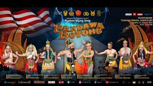 Hal itu terwujud bertepatan Hari Bhakti Samudera, 15 Januari 2023, bertempat di Teater Besar Taman Ismail Marzuki (TIM), Cikini, Jakarta, digebyar pagelaran tak biasa, wayang orang kolosal dengan lakon “Pandawa Boyong”.