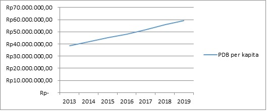 Penggunaan variabel PDB per kapita sebagai indikator pembanding tentu juga tidak sembarang digunakan oleh beliau. Dalam jurnal yang berjudul Keterkaitan Investasi Modal Terhadap GDP Indonesia dalam Economics Development Analysis Journal 3 (2) (2014), Lutvi Fauziana dkk. mendapatkan kesimpulan bahwa, “Peningkatan pendapatan perkapita masyarakat akan mendorong peningkatan pendapatan nasional. Jika pendapatan nasional suatu bangsa mengalami kenaikan, maka pertumbuhan ekonomi negara tersebut membaik”. Dari tabel yang tersaji (sumber : Statistik Indonesia 2020 oleh BPS, diolah sendiri), terlihat bahwa dari tahun 2013 sampai dengan 2019 PDB per kapita Indonesia memiliki tren positif. Artinya, pertumbuhan ekonomi negara Indonesia membaik dari tahun ke tahun.