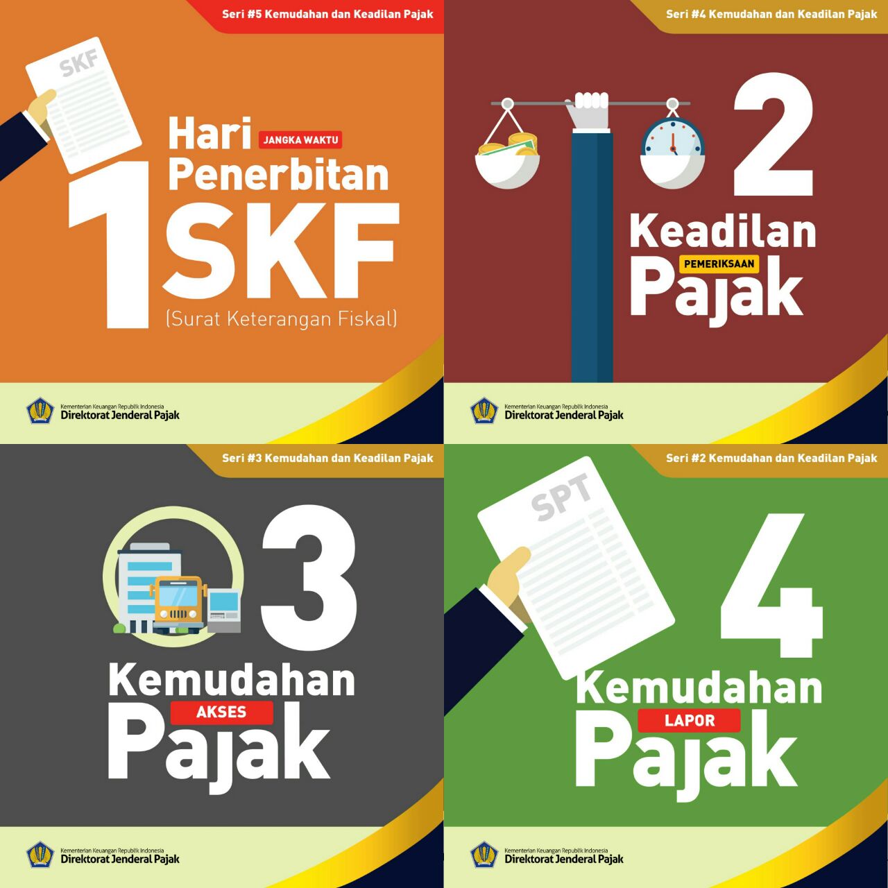 Apa saja kemudahan dan keadilan pajak bagi masyarakat, dalam hal ini wajib pajak, yang dibuat oleh DJP? Hingga tulisan ini dibuat, sudah ada 5 (lima) seri Kemudahan dan Keadilan Pajak yang dikeluarkan oleh DJP. Mulai dari 1 hari jangka waktu penerbitan Surat Keterangan Fiskal (SKF), 2 keadilan pemeriksaan pajak, 3 kemudahan akses pajak, 4 kemudahan lapor pajak, hingga 5 kemudahan daftar pajak. Menariknya, kemudahan dan keadilan pajak bagi masyarakat ini dikemas oleh tim kreatif DJP dalam urutan angka. Sebuah infografis yang cukup menarik dan informatif tentunya.
