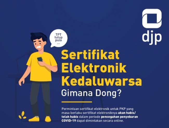Permintaaan sertifikat elektronik (sertel) untuk Pengusaha Kena Pajak (PKP) yang masa berlaku sertifikat elektroniknya akan habis/ telah habis dalam periode pencegahan penyebaran COVID-19 dapat dimintakan secara daring (online).