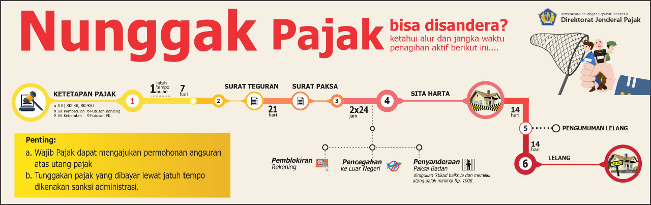 Berdasarkan UU PPSP, wajib pajak yang sudah diberikan surat teguran untuk melunasi utang pajaknya, namun tak kunjung melunasinya, akan diberikan surat paksa. Surat paksa ini mempunyai kekuatan eksekutorial dan kedudukan hukum yang sama dengan putusan pengadilan yang telah mempunyai kekuatan hukum tetap.