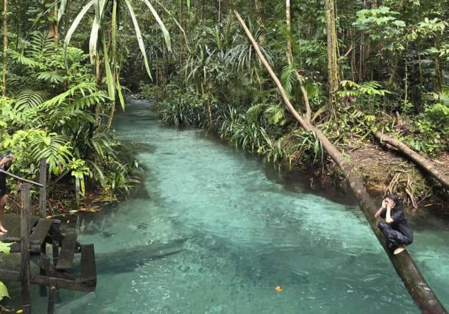 Salah satu spot wisata yang sempat kami kunjungi adalah Kali Biru Raja Ampat. Kali Biru terletak di pedalaman hutan Raja Ampat, Kampung Warsambin, Distrik Teluk Mayalibit, Raja Ampat. Kali Biru ini menjadi objek wisata air yang sayang untuk dilewatkan ketika mengunjungi Raja Ampat.