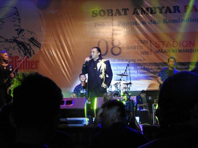 Sang pemikat hati yang ambyar, Lord Didi Kempot, memulai aksi panggungnya tepat pukul 21.00 WIB. Seluruh stadion bergemuruh melantunkan irama pujaan yang penuh dengan kenangan. Dengan terselip sedikit kebanggaan, bahwa Sobat Ambyar telah berkontribusi pada pembangunan dan siap untuk menjadi panutan.