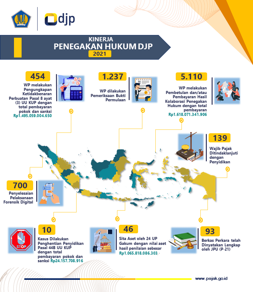 Pada tahun 2021, DJP melakukan pemeriksaan bukti permulaan terhadap 1.237 wajib pajak “nakal”. Dari kegiatan tersebut, 454 wajib pajak akhirnya “mengakui kesalahannya” dengan mengungkapkan ketidakbenaran perbuatan sesuai Pasal 8 ayat (3) UU KUP dengan total pembayaran mencapai Rp1,49 triliun.