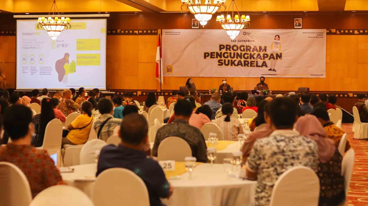 Kantor Wilayah Direktorat Jenderal Pajak Sulawesi Utara, Tengah, Gorontalo, dan Maluku Utara (Kanwil DJP Suluttenggomalut) mengadakan tax gathering dengan tema Program Pengungkapan Sukarela (PPS) yang diselenggarakan secara tatap muka di Swiss-Belhotel Maleosan, Kota Manado (Selasa, 29/3). Kegiatan yang tetap menerapkan protokol kesehatan Covid-19 ini terselenggara berkat kerja sama dengan Kantor Pelayanan Pajak (KPP) Pratama Manado.