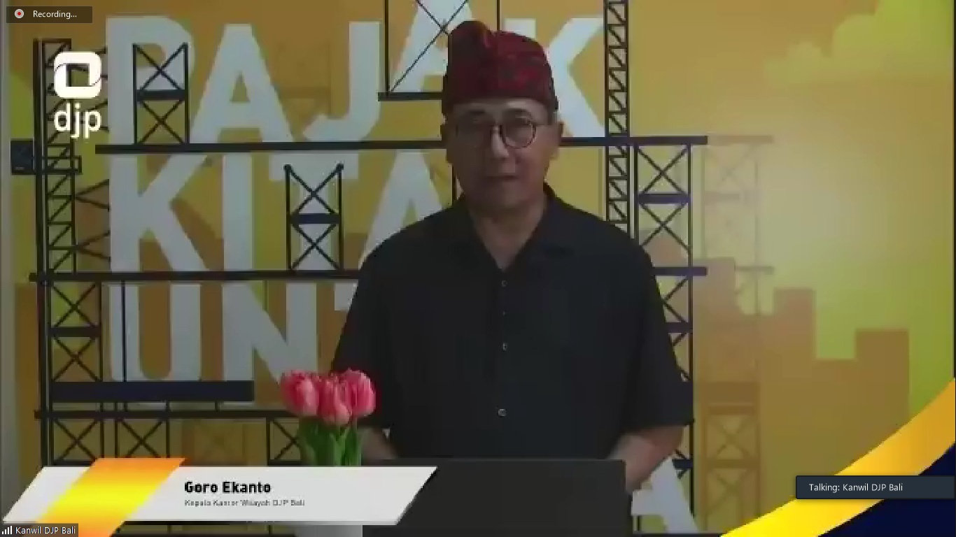 Goro Ekanto selaku Kepala Kanwil DJP Bali memberikan sambutan sekaligus membuka acara webinar ini.