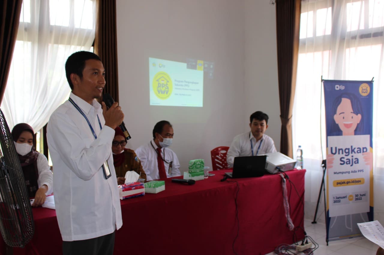 Kantor Pelayanan Penyuluhan dan Konsultasi Perpajakan (KP2KP) Banawa bekerja sama dengan Kecamatan Banawa Selatan mengadakan kegiatan Sosialisasi Perpajakan Anggaran Dana Desa dan Program Pengungkapan Sukarela di Kantor Kecamatan Banawa Selatan, Kabupaten Donggala (Senin, 13/6). Materi sosialisasi yang diberikan adalah tentang pemotongan/pemungutan Pajak Penghasilan (PPh) dan Pajak Pertambahan Nilai (PPN) pengelolaan dana desa sesuai PMK-59/2022 serta PPS. Sosialisasi ini dihadiri oleh 19 Perangkat Desa yang ada di Kecamatan Banawa Selatan.