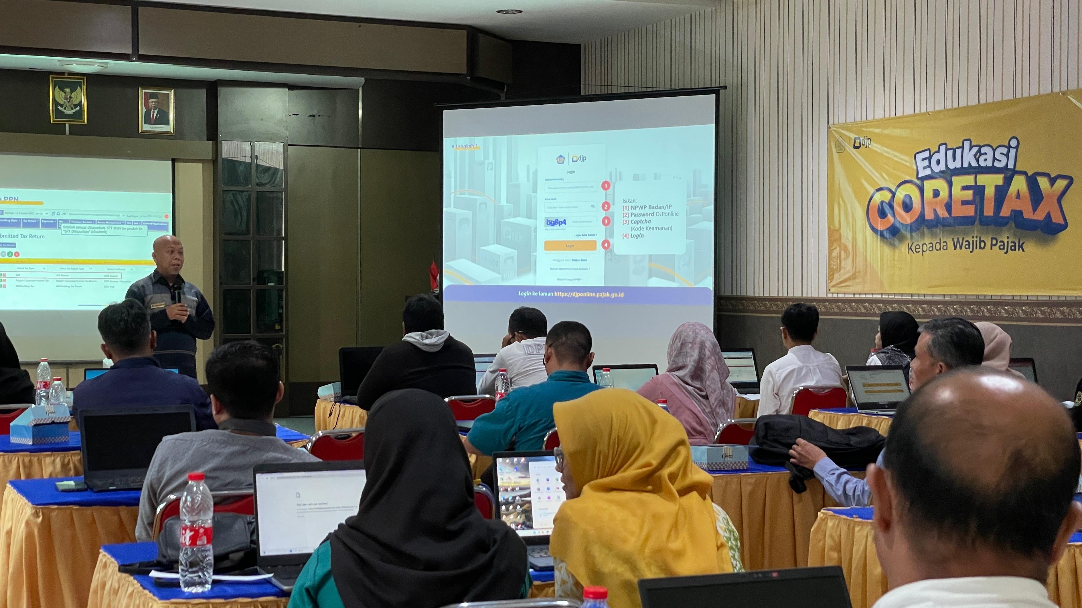 Kantor Pelayanan Pajak (KPP) Pratama Tasikmalaya menyelenggarakan edukasi Coretax kepada 20 instansi pemerintah di Kota Tasikmalaya di Aula KPP Pratama Tasikmalaya (Rabu, 16/10). Kegiatan tersebut bertujuan untuk mengenalkan aplikasi Coretax kepada para peserta. Coretax merupakan sistem teknologi informasi dalam administrasi perpajakan yang bertujuan untuk mengotomatisasi proses bisnis yang dijalankan oleh DJP sebagai pihak yang memegang otoritas perpajakan.