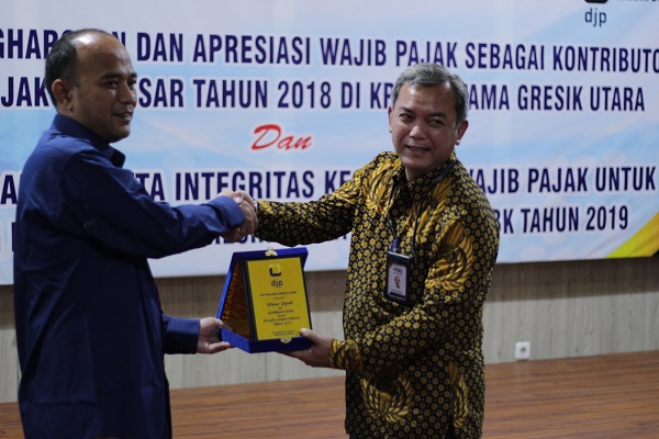 KPP Pratama Gresik Utara mengadakan acara "Pemberian Penghargaan dan Apresiasi Wajib Pajak Sebagai Kontributor Pajak Terbesar Tahun 2018 di Aula Lantai IV Gedung KPP Pratama Gresik Utara (Kamis, 23/5). Sebanyak 20 wajib pajak diundang dalam acara tersebut yang merupakan kontributor penerimaan terbesar KPP Pratama Gresik Utara selama tahun 2018, dari peringkat pertama sampai peringkat ke dua puluh.