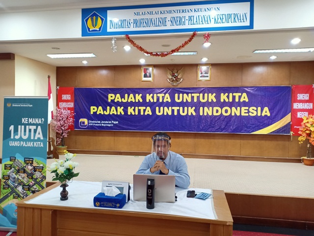 Sebanyak 28 bendahara pemerintah pusat di Kabupaten Bojonegoro mengikuti sosialisasi perpajakan bendahara mahir pajak yang diadakan Kantor Pelayanan Pajak (KPP) Pratama Bojonegoro secara daring melalui aplikasi Zoom Meeting di KPP Pratama Bojonegoro (Rabu, 24/6). Sosialisasi ini bertujuan untuk mengingatkan kembali kewajiban perpajakan bendahara mengenai tata cara pemotongan/pemungutan, pembayaran, dan pelaporan sehingga dapat melaksanakan dan mempertanggungjawabkan aspek perpajakan sebagaimana mestinya.