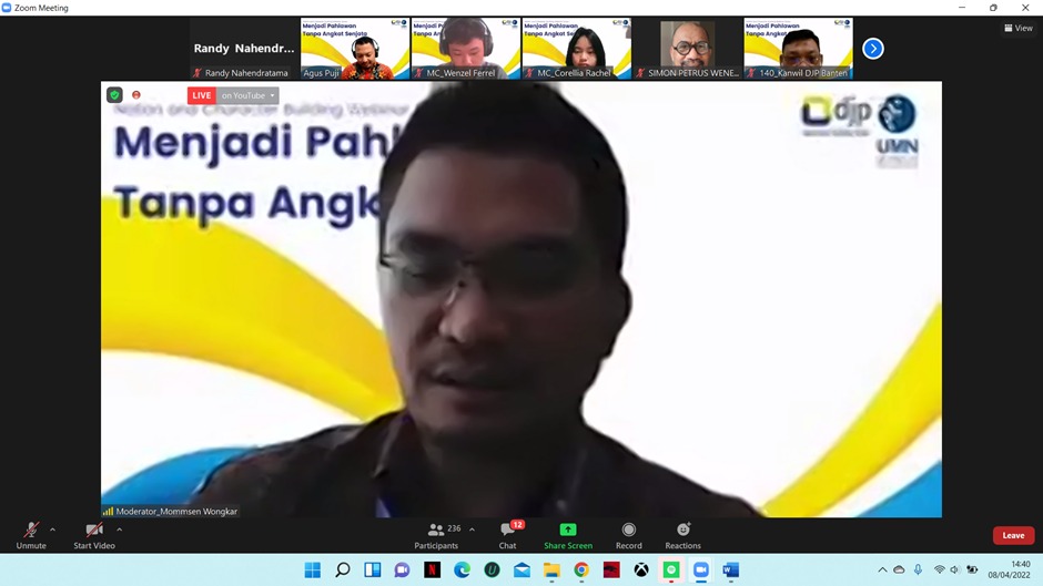 Kantor Wilayah DJP Banten bersama Tax Center Universitas Multimedia Nusantara (UMN) melakukan kegiatan webinar untuk mahasiswa secara daring melalui aplikasi zoom cloud meeting di Kota Serang, Banten (Jumat, 8/4).