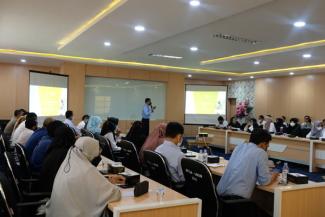 Kepala KPP Pratama Penajam Lita Murni memberi gambaran singkat mengenai urgensi perubahan tarif dari jenis pajak yang akan dibahas serta pentingnya peran bendaharawan sebagai pemungut pajak.