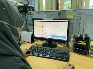 Kharisma Citra Ayuning Tyas dan Linda Ayu Wulandari, pelaksana Seksi Pelayanan Kantor Pelayanan Pajak (KPP) Pratama Bontang mengirimkan Whatsapp dan email blast terkait Survei Kepuasan Pelayanan dan Efektifitas Penyuluhan dan Kehumasan Direktorat Jenderal Pajak Tahun 2022 di Kota Bontang (Jumat, 05/08).