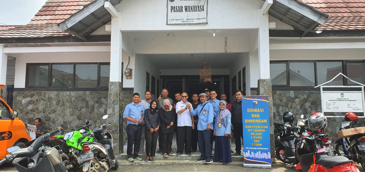 KPP Pratama Purwakarta menggelar kegiatan Bimbingan dan Edukasi dalam rangka Pengisian SPT Tahunan dengan e-Filing dan e-Form di UPTD Pasar Wanayasa, Purwakarta (Rabu, 29/1). Selain bekerja sama dengan dinas terkait, kegiatan yang diikuti 42 orang pedagang di Pasar Wanayasa ini terselenggara juga berkat kerja sama dengan PT Pos Indonesia. Kehadiran mobil pos keliling membantu para pedagang dalam pembayaran pajaknya.