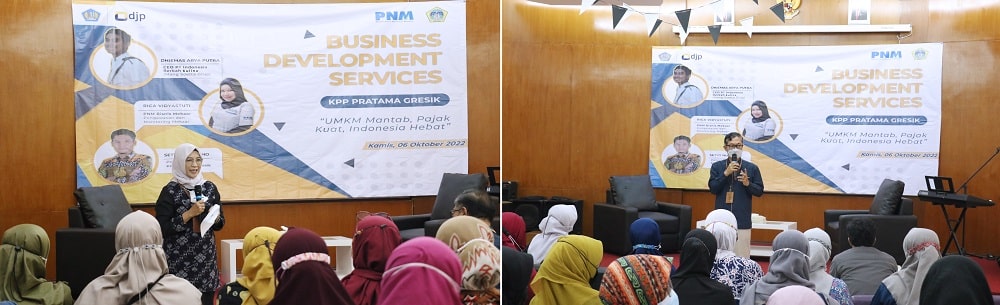 KPP Pratama Gresik bekerja sama dengan Dinas Koperasi, Usaha Mikro, dan Perindag (Diskoperindag) Kabupaten Gresik menyelenggarakan Program Business Development Services (BDS) bagi para pelaku UMKM (Kamis, 6/10). Acara BDS dilaksanakan di Aula KPP Pratama Gresik dan dihadiri oleh kurang lebih 50 pelaku UMKM Kabupaten Gresik.