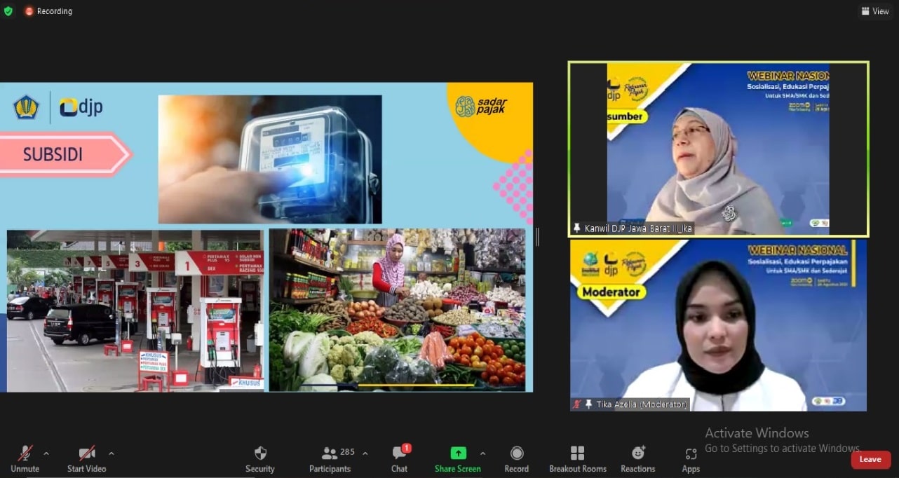 Fungsional Penyuluh Pajak Kanwil Direktorat Jenderal Pajak (DJP) Jawa Barat III Ika Kartini Aulia menjadi salah satu pembicara dalam kegiatan Webinar Nasional "Sosialisasi, Edukasi Perpajakan untuk SMA/SMK dan Sederajat" yang digelar oleh Tax Center Institut STIAMI Kampus A Kota Bekasi di Bekasi (Sabtu, 28/8).