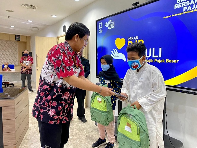 Kanwil DJP Wajib Pajak Besar mengadakan kegiatan bakti sosial kepada 52 anak tenaga pendukung di lingkungan gedung Dr. K.R.T. Radjiman Wedyodiningrat, Kanwil DJP Wajib Pajak Besar, Jakarta (Jumat, 10/07).