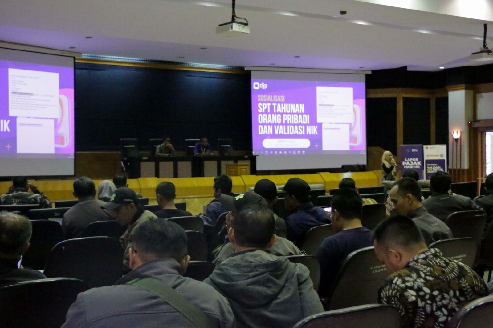 Tim Penyuluh Pajak Kantor Pelayanan Pajak (KPP) Pratama Cianjur memberikan Sosialisasi dan Bimbingan Teknis Pelaporan SPT Tahunan bagi Wajib Pajak Orang Pribadi dan Pemutakhiran Data NIK-NPWP di Balai Besar Pelatihan Kesehatan (BBPK) Ciloto, Jalan Raya Puncak Ciloto KM 90, Ciloto, Cipanas, Kabupaten Cianjur (Jumat, 27/1).