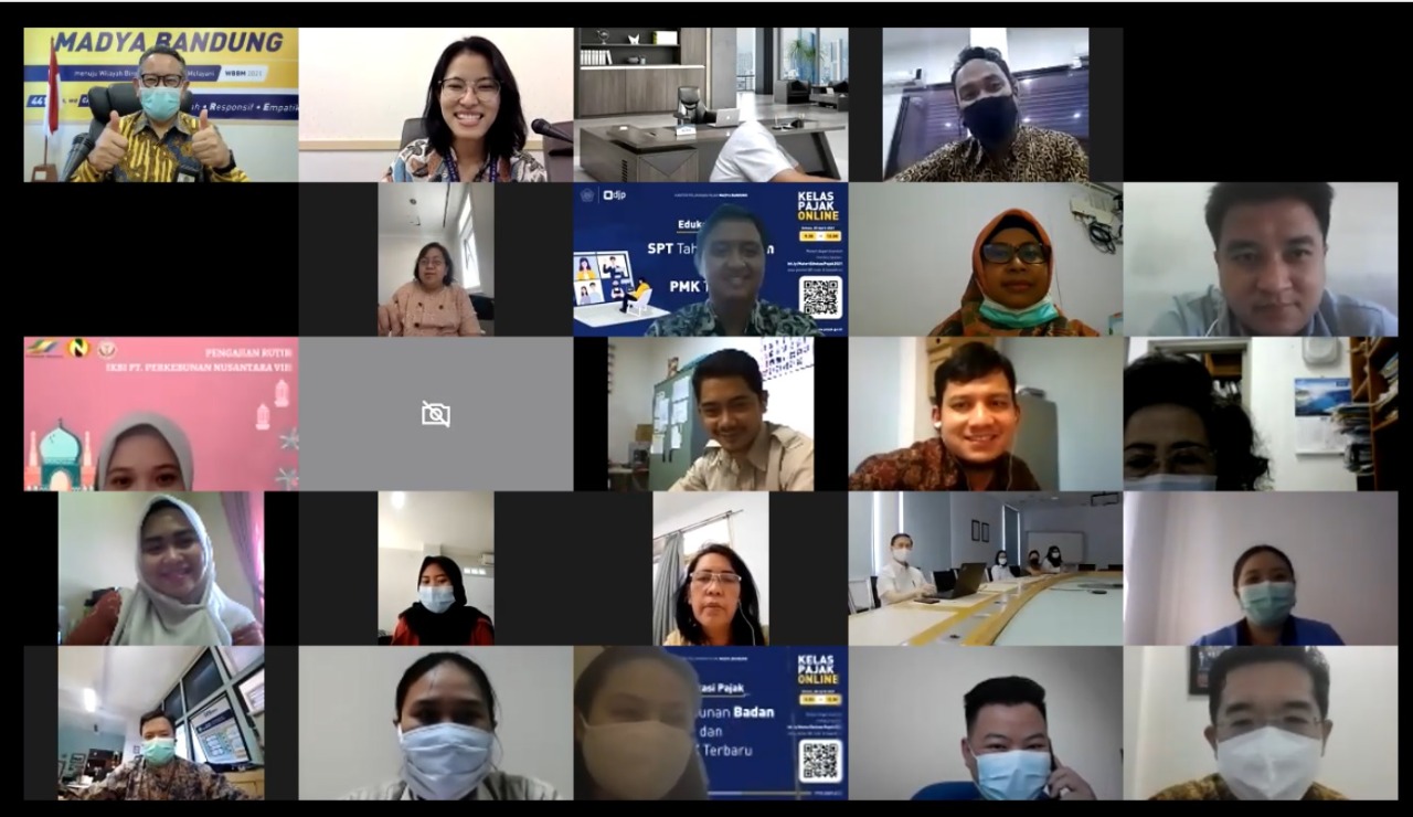 Kantor Pelayanan Pajak (KPP) Madya Bandung kembali menggelar Kelas Pajak secara daring di Bandung (Selasa, 20/4). Sebanyak 53 wajib pajak bergabung pada kegiatan yang membahas insentif perpajakan terbaru yang dikeluarkan oleh pemerintah ini.