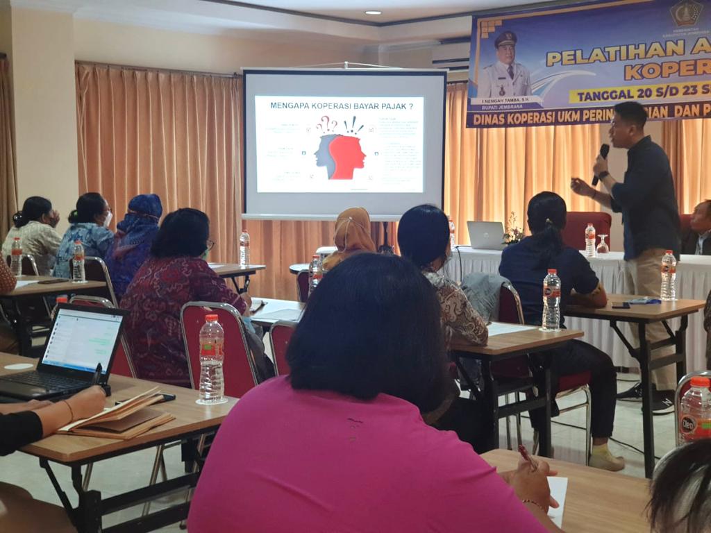 Program pelatihan perkoperasian yang bertemakan “Akuntansi Koperasi” ini dibuka oleh Ni Made Yunny Kurniawathi selaku Fungsional Pengawas Koperasi Ahli Muda. Kegiatan tersebut bertujuan untuk memberikan edukasi terkait aspek perpajakan koperasi mulai dari kewajiban perpajakan koperasi, tarif terbaru yang digunakan koperasi sampai dengan pelaporan Surat Pemberitahuan (SPT) Tahunan Badan.