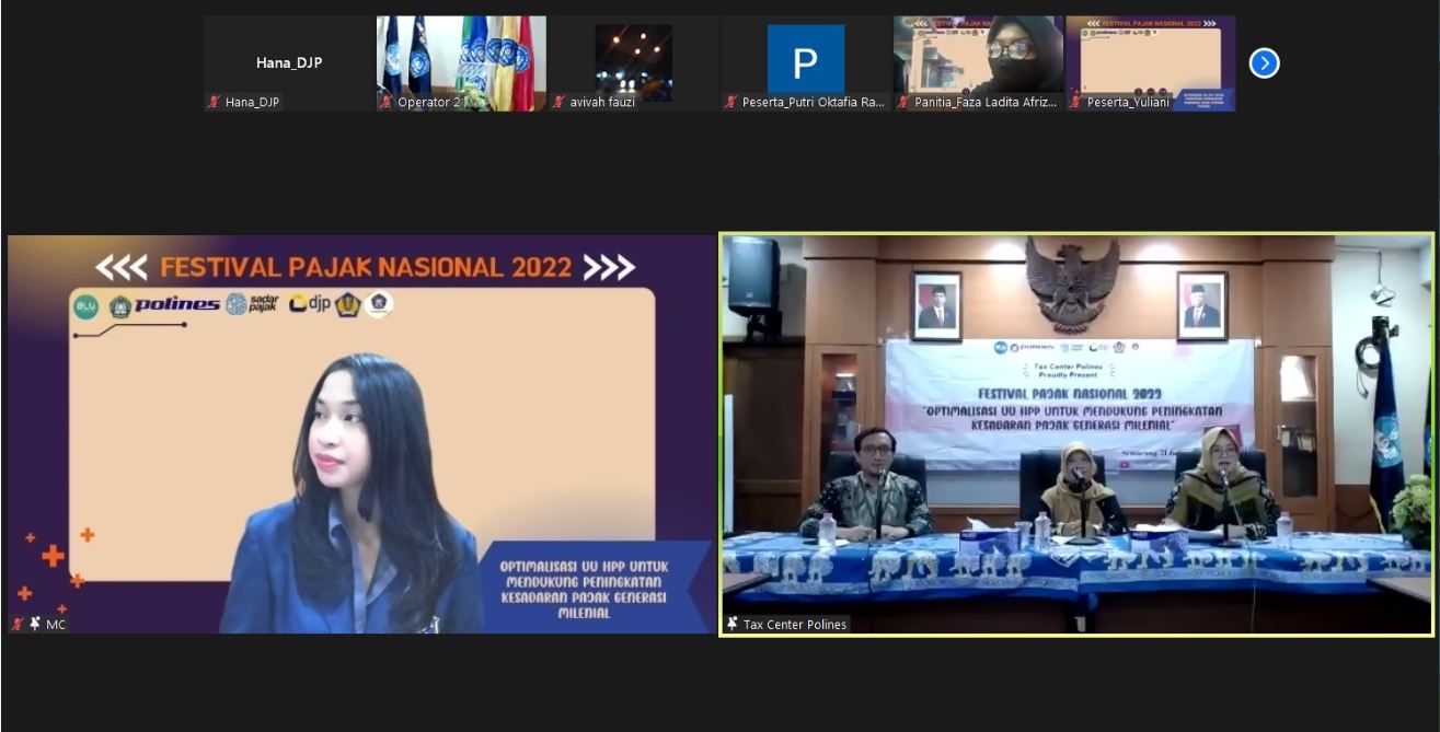 Politeknik Negeri Semarang (Polines) menyelenggarakan web seminar dan Festival Pajak Nasional 2022 secara daring di aula Tax Center Polines di Kota Semarang (Selasa, 21/6).