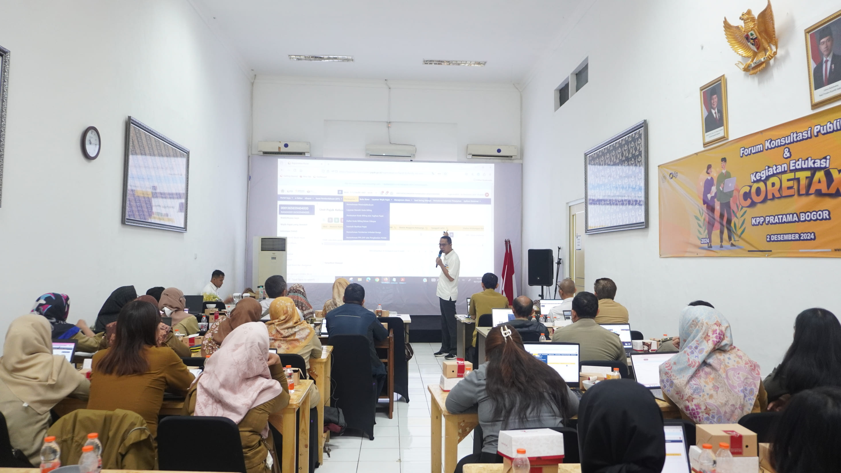 Kantor Pelayanan Pajak (KPP) Pratama Bogor melaksanakan kegiatan Forum Konsultasi Publik dan Edukasi Coretax bersama Instansi Pemerintah Kota Bogor di Aula Raden Saleh, Gedung Heritage KPP Pratama Bogor, Kota Bogor (Senin, 2/12).