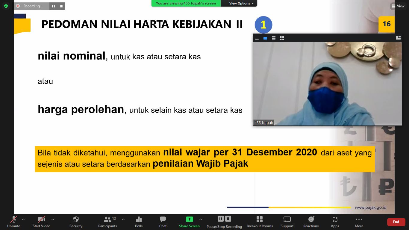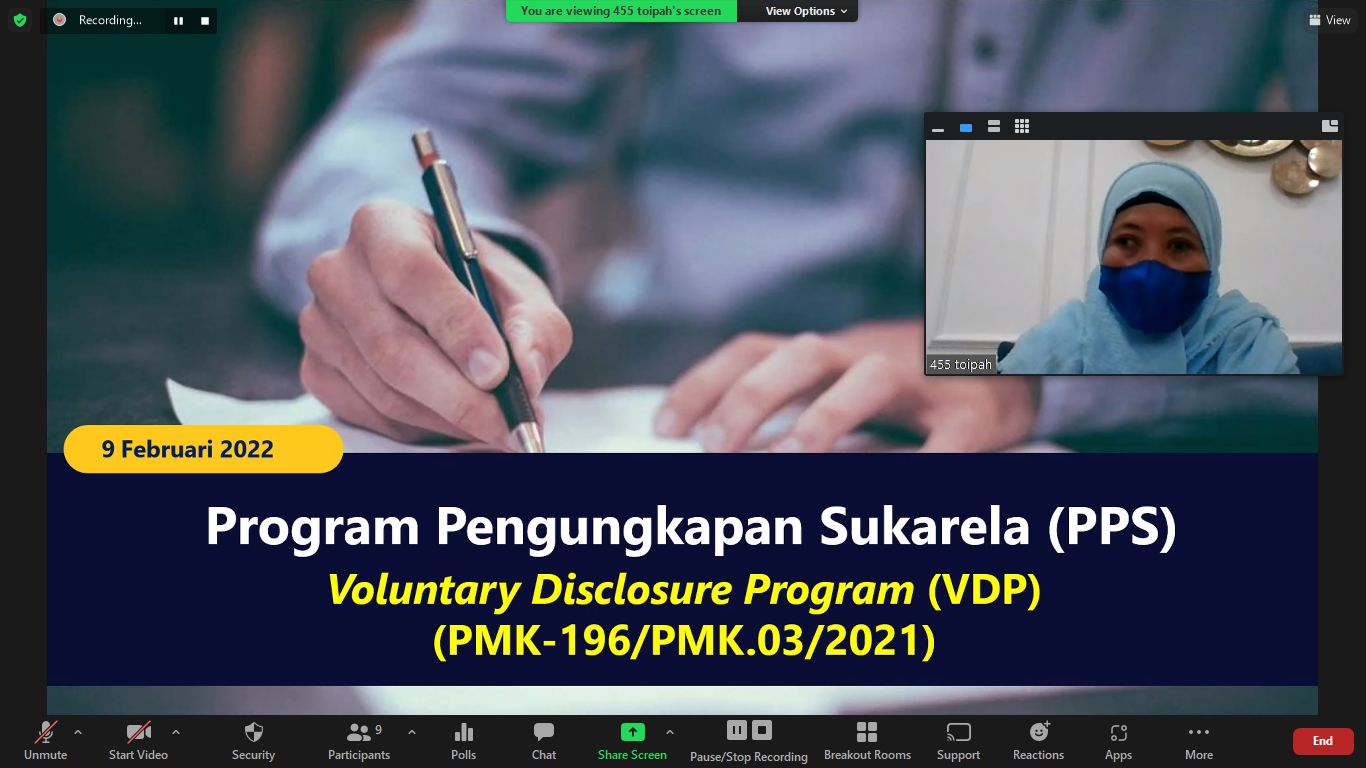 Kegiatan dilakukan melalui media Zoom Meeting. Fungsional Penyuluh KPP Pratama Cirebon dua memberikan penyuluhan tentang PPS kepada wajib pajak di Wilayah Kabupaten Cirebon. Diharapkan dari adanya kegiatan ini dapat membantu wajib pajak dalam memanfaatkan program PPS.