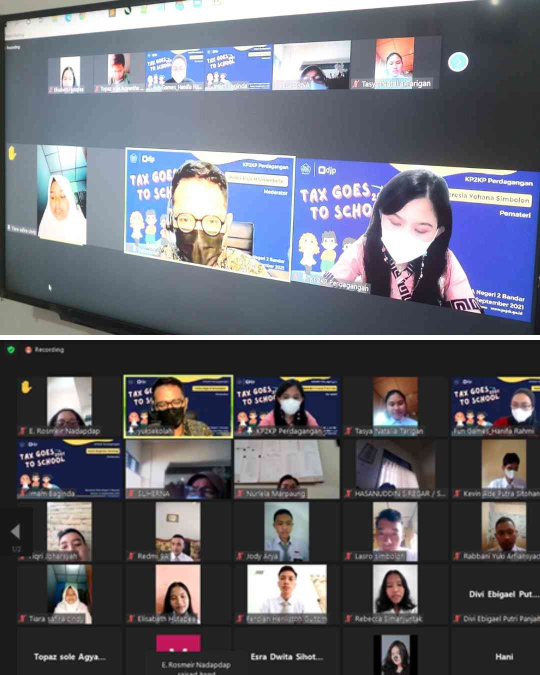 Kantor Pelayanan Penyuluhan dan Konsultasi Perpajakan (KP2KP) Perdagangan mengadakan kegiatan Tax Goes To School (TGTS) tahun 2021 bersama Sekolah Menengah Atas (SMA) Negeri 2 Bandar secara daring di KP2KP Perdagangan, Kabupaten Simalungun (Selasa, 14/9). Kegiatan ini dihadiri oleh 41 peserta yaitu 11 guru dan 30 siswa SMA Negeri 2 Bandar.