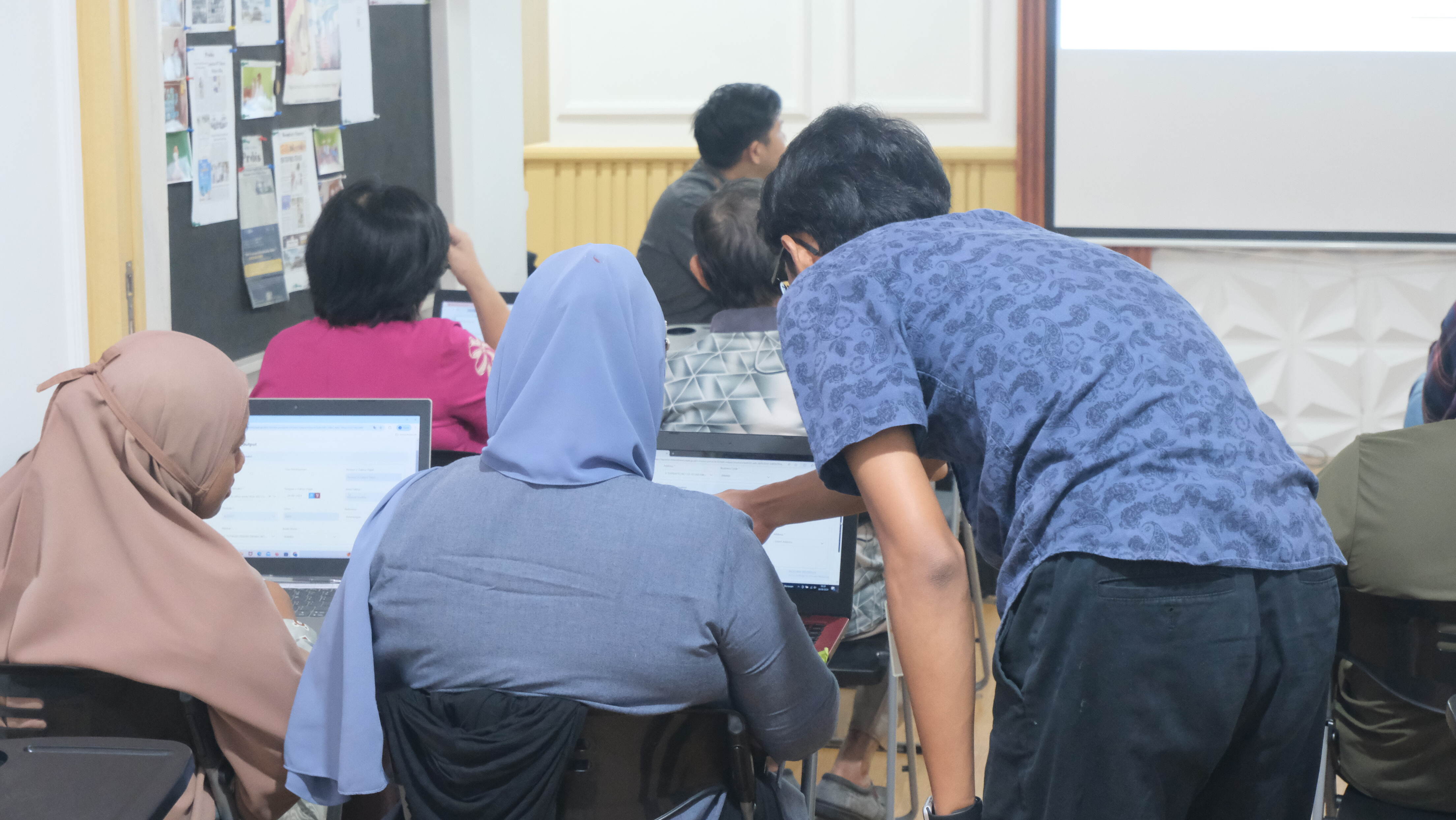 Didampingi petugas pajak lainnya, Fasya membantu para peserta dalam proses pelaporan SPT Masa dan Tahunan, penerbitan faktur, pembuatan bukti potong, hingga pembuatan kode billing.