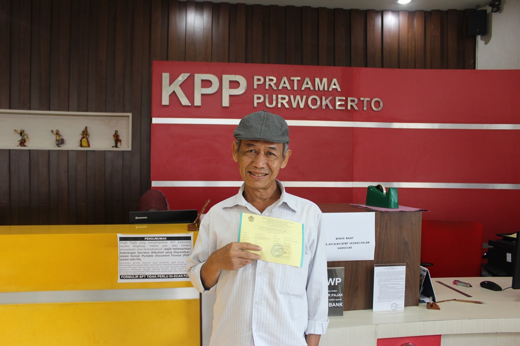 Ahmad Tohari (69 tahun) Sastrawan Indonesia melaporkan SPT Tahunan 2017 di Kantor Pelayanan Pajak (KPP) Pratama Purwokerto (Senin, 19/3). Ahmad Tohari adalah sastrawan yang terkenal dengan novel triloginya Ronggeng Dukuh Paruk yang ditulis pada 1981.