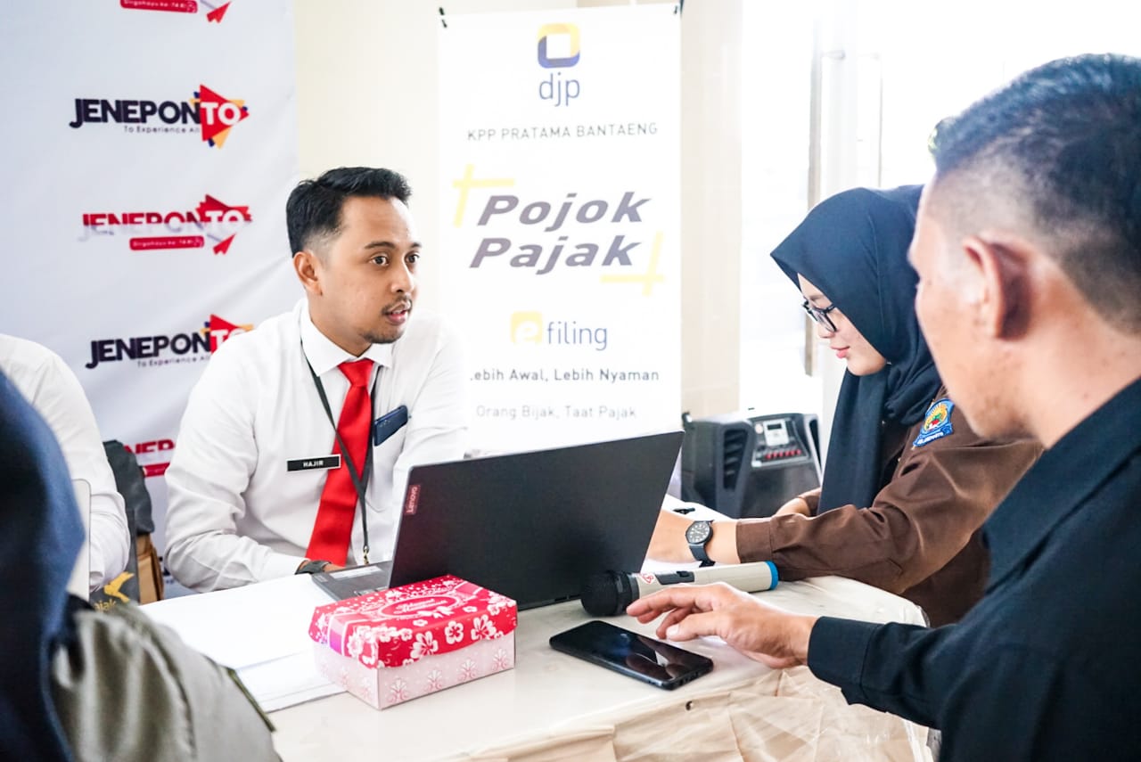 Dalam rangka memberikan contoh kepada ASN di lingkungan Pemerintah Daerah (Pemda) Jeneponto, Kantor Pelayanan Pajak (KPP) Pratama Bantaeng melaksanakan kegiatan Pekan Panutan Pajak bersama Bupati Jeneponto Iksan Iskandar di Bontosunggu, Jeneponto, Sulawesi Selatan (Senin, 17/2).