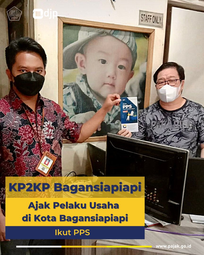 Kantor Pelayanan Penyuluhan dan Konsultasi Perpajakan (KP2KP) Bagansiapiapi mengajak para pelaku Usaha di Kota Bagansiapiapi, Kabupaten Rokan Hilir untuk ikut memanfaatkan Program Pengungkapan Sukarela (PPS). Tim KP2KP Bagansiapiapi menyusuri Kota Bagansiapiapi sembari mengajak para pelaku usaha untuk memanfaatkan PPS dengan membagikan leaflet informasi PPS serta melakukan konsultasi One on One pada para pelaku usaha tersebut (Selasa, 21/06).