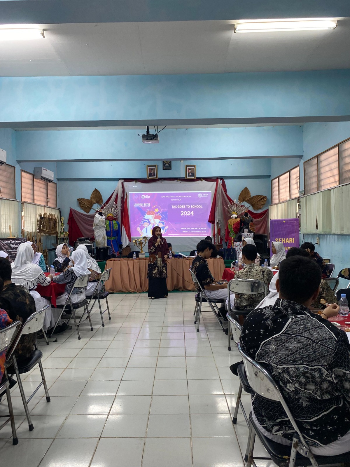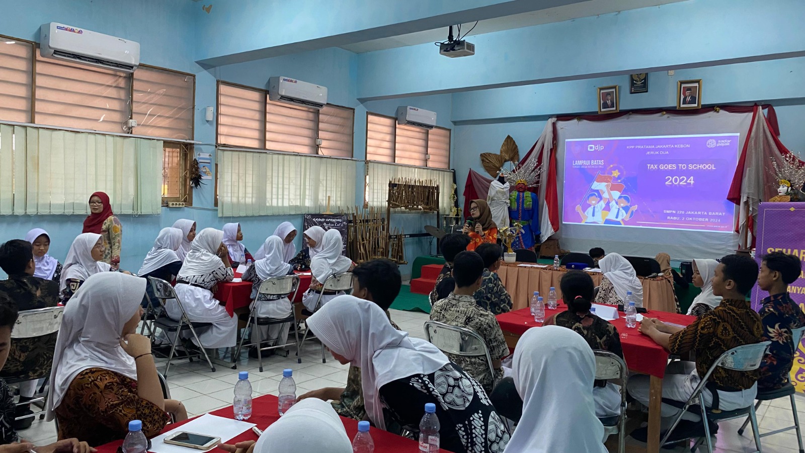 Kantor Pelayanan Pajak (KPP) Pratama Jakarta Kebon Jeruk Dua kembali menyelenggarakan Tax Goes to School (TGTS) di Aula Sekolah Menengah Pertama Negeri (SMPN) 220 Jakarta, Jakarta Barat (Rabu, 2/10). Kegiatan TGTS merupakan rangkaian kegiatan Direktorat Jenderal Pajak (DJP) dalam memberikan sosialisasi dan perkenalan pajak ke lingkungan masyarakat yang lebih lebih dini, yakni tingkat pendidikan atau bangku sekolah.