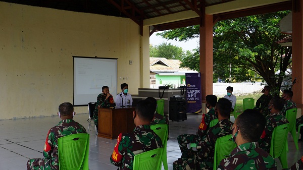 Kantor Pelayanan Penyuluhan dan Konsultasi Perpajakan Marisa (KP2KP Marisa). Mengadakan Sosialisasi Pelaporan SPT Tahunan secara e-Filing di Komando Distrik Militer (Kodim) 1313 Pohuwato (Senin, 1/3). Kegiatan Sosialisasi dilaksanakan dengan menerapkan protokol kesehatan yang berlaku yaitu menerapkan jaga jarak fisik, penggunaan masker selama kegiatan berlangsung, dan pengecekan suhu tubuh sebelum mengikuti sosialisasi.