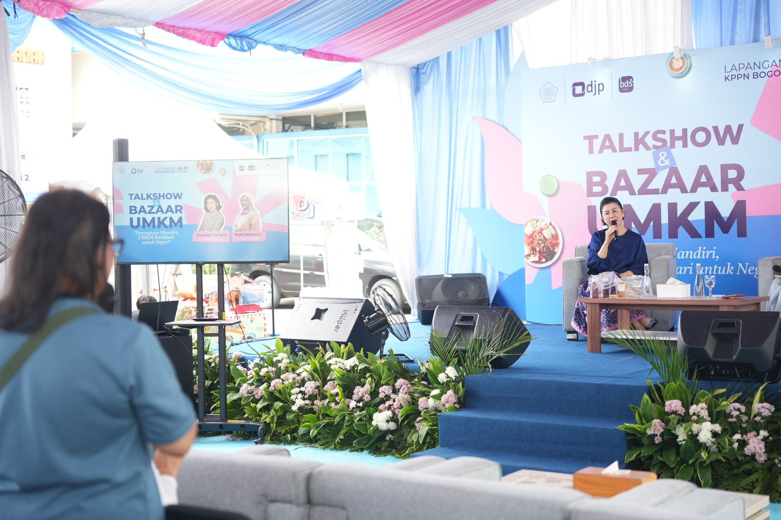 Di hari kedua, para peserta UMKM dan masyarakat Kota Bogor menyaksikan talkshow interaktif yang menghadirkan Desiree Tarigan, pemilik Mamitoko, dan Putri Santoso, co-founder Kopi Tuli. Bersama moderator Rima Budiarti, pegawai DJP, baik Desi dan Putri membagikan pengalamannya merintis usaha.
